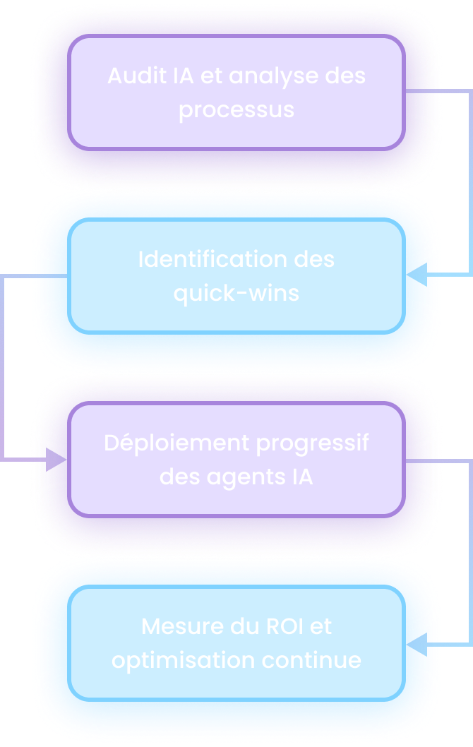 Nous accompagnons les startups, PME, cabinets de conseil, cabinets d’expertise comptable et équipes commerciales parisiennes dans la mise en place de solutions IA concrètes, mesurables et orientées performance.